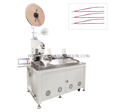 電線切斷、單端剝皮、兩端(duān)剝皮、合壓端子、一端壓著一(yī)端半剝皮扭線上錫;剝皮(pí)長度/壓著位置/刀深可設置調整 |