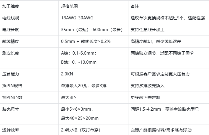 ①寬範圍(wéi)兼容:線規覆蓋18AWG-30AWG、膠殼尺寸覆蓋5×6×3mm-40×25×20mm,適配多數線束需求;